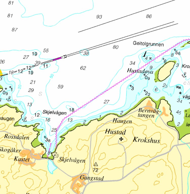 Skjelvågen ligger på nordsiden av Inderøy, 5 nm SW for Steinkjer. Dette er det nærmeste målet i Ti på svai, hvis man har Steinkjer som utgangspunkt.